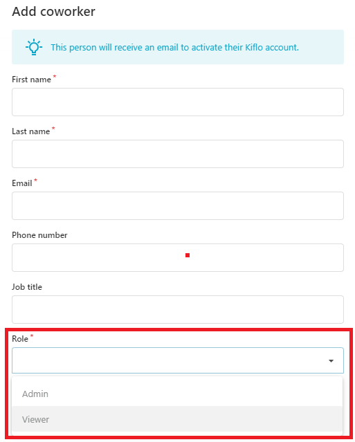 • And select the desired Role while creating a new coworker